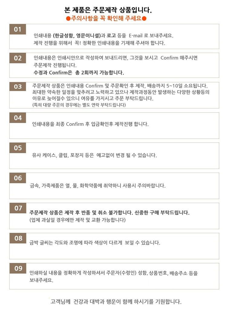- ÁÖ¹® ½Åû ÈÄ ÇØ´ç ¹°Ç° ´ë±ÝÀ» ¼Û±ÝÇØ ÁÖ½Ã°í ¼Û±Ý È®ÀÎÀº ¹Ýµå½Ã À¯¼±À¸·Î È®ÀÎÇϽñ⠹ٶø´Ï´Ù. (ÁÖ¹® ÈÄ ¹ÌÀÔ±Ý, ¶Ç´Â ÀüÈ»ó ¼·Î È®ÀÎÀÌ ¾ÈµÉ °æ¿ì Á¦ÀÛÀÌ Áö¿¬µÇ´Â °æ¿ìµµ ÀÖÀ½)