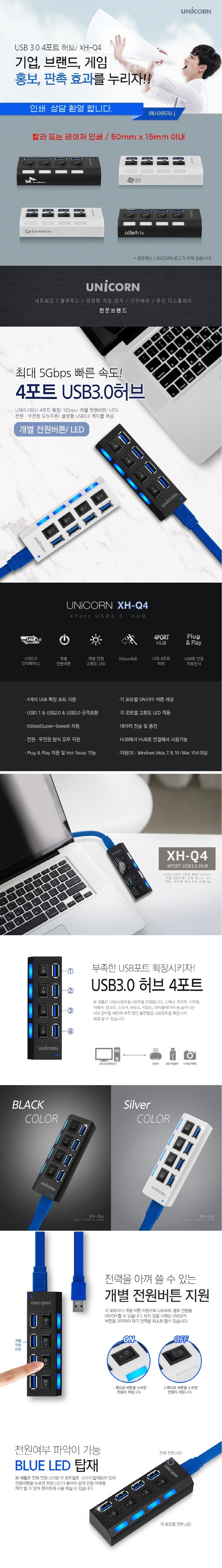 À¯´ÏÄÜ XH-Q4 °³º° ½ºÀ§Ä¡ 4Æ÷Æ® USB 3.0 Çãºê